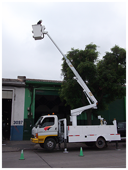 Camion Alza Hombres, Giro 360° grados con 12 metros útiles, capacidad de 200Kg en canastillo para trabajo de un operario en altura